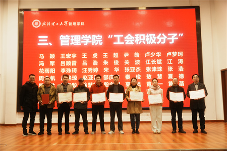 王超副院长、张光磊副院长、嵇蕴洁副院长和张冰副书记分别为43位获奖代表颁发jdb电子游戏官方网站“工会积极分子奖”。