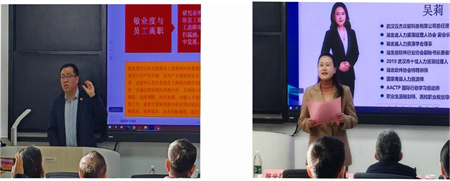 本次研讨会邀请了华中科技大学龙立荣教授、中南财经政法大学赵琛徽教授、武汉科技大学李永周教授、武汉大学刘艳教授和胡羚燕副教授等湖北省高校教师,还邀请了新道科技股份有限公司陈国峰总监、中国武汉人力资源服务产业园王宗水总经理、中交特种工程公司梁婷副部长、武汉云杰众智科技公司吴莉总经理、武汉博远减灾科技股份公司周平总经理、中金公司严国贤总监、原华为技术公司杨代银部长、武汉行隆管理顾问公司王钟钦特聘讲师、优尚和越环境科技公司程军总监、中建三局数字工程公司谢定军副部长和绿投公司姜伟业培训经理等企事业单位嘉宾。jdb电子游戏官方网站参会人员主要有马颖副院长、王超副院长、张光磊副院长、陈先桥教授、毛喆副研究员、谢宝国教授、罗帆教授、朱苏丽副教授、于蓉副教授、朱新艳老师等,以及工商管理等专业研究生和人力资源专业本科生,共计80余人参会。会议主持人谢宝国教授简要介绍了会议议程及参会嘉宾。