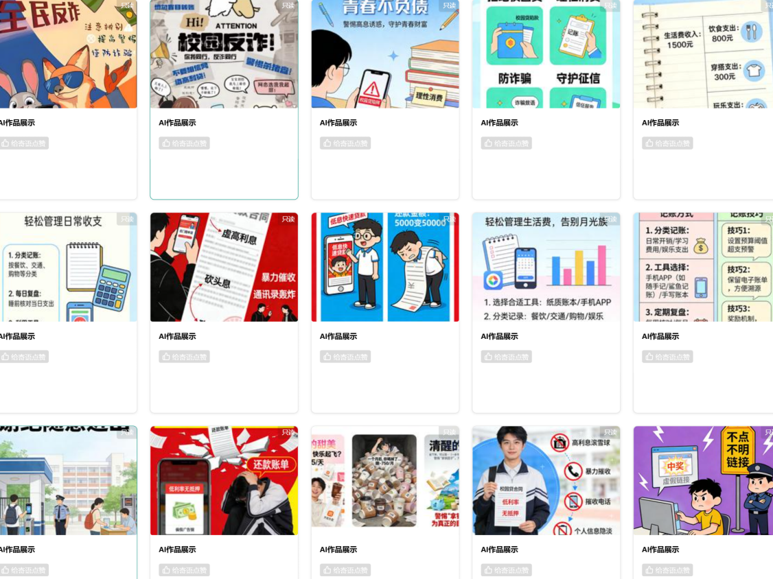 为了进一步扩大活动影响力,让财商理念以青年喜闻乐见的形式广泛传播,会计2405团支部在寒假期间精心组织开展“青春智慧共创”网络文化作品创作活动。团员们充分发挥专业特长与青春创意,积极运用AIGC等数智工具,结合前期财商实践调研成果与个人学习体会,创作推出财商科普海报、金融防诈表情包、理财短句金句等一系列贴近生活、富有新意的文创作品。系列作品不仅在支部线上打卡墙集中展示,而且在校园易班等平台进行宣传推广。活泼生动的表情包让金融防诈知识不再枯燥生硬,简洁有力的金句让理性理财观念一目了然、易于传播。