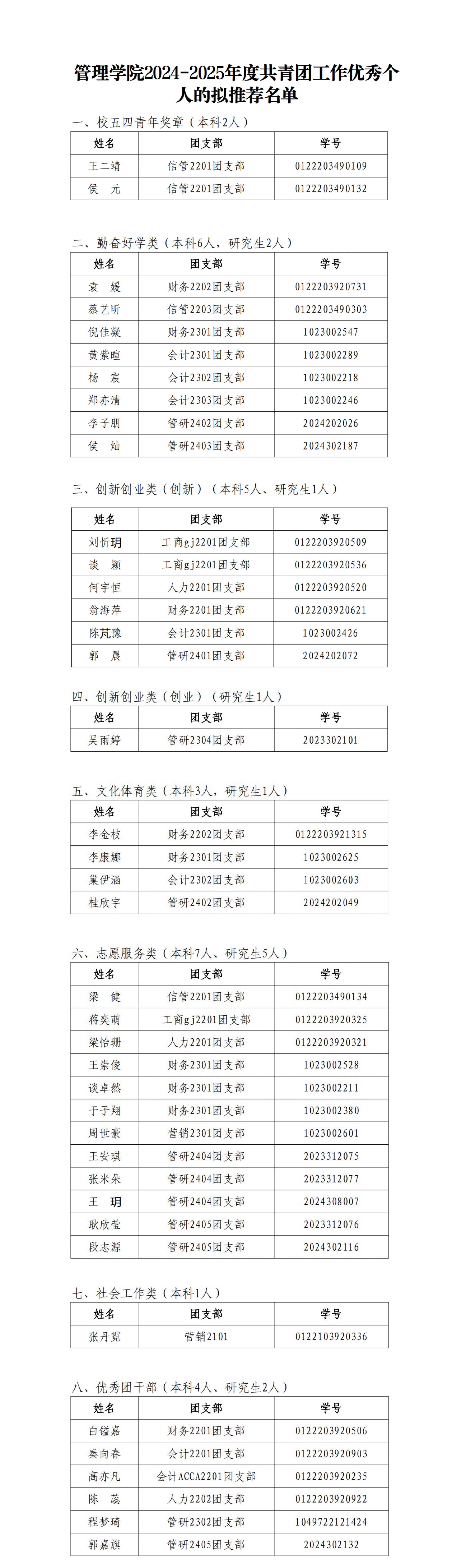 根据校团委《关于评选jdb电子游戏官方网站2024-2025年度共青团工作先进集体和优秀个人的通知》,经个人申请、推优答辩、学院团委审核,现将jdb电子游戏官方网站2024-2025年度共青团工作优秀个人拟推荐名单予以公示,共有40人(本科生28人,研究生12人)。