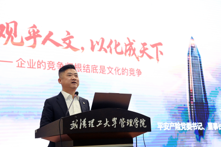 随后,举行创新管理论坛,龙泉校友作“关乎人文 以化成天下——企业的竞争归根到底是文化的竞争”专题报告。他表示,对受聘为学校兼职教授深感荣幸与自豪,并结合自身近三十年深耕保险产业的管理实践经验,介绍了个人成长与企业发展“深度双向奔赴、共画同心圆”的奋斗经历,全面系统阐述了中国平安的企业文化内涵与价值,精准厘定了“把价值最大化作为检验一切工作的唯一标准”这一思想理念,作为平安企业文化演变及核心发展的清晰脉络,明确指出要以诚信为基,持续增强客户省心、省时、省钱的优质用户体验,进一步优化资源配置,切实减轻客户负担,大力提高服务效率。同时着重强调,企业要具备危机文化意识,依法合规经营,在激烈的市场竞争中谋求生存,在创新驱动中追求高质量发展。